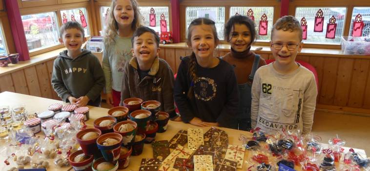 Nach einem leckeren Begrüßungspunsch erwartete die Eltern und Omas neben wunderschönen Weihnachtsliedern, die ihre Kinder und Enkel zum Besten gaben, eine Auswahl an Lebkuchen und heißer Kaffee. Besonders beliebt war, wie in jedem Jahr, der Basar. Unsere Vorschulkinder verkauften, sehr erfolgreich selbstgemachte Schokolade, Brot im Tontopf, Likör, Badejellys u.v.m. Da fand wirklich jeder eine Kleinigkeit für sich selbst oder auch als Mitbringsel.