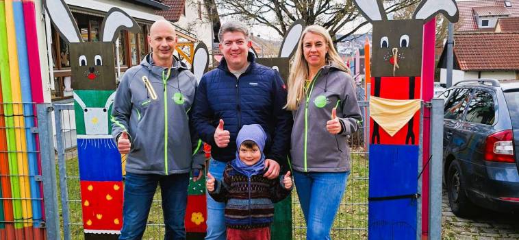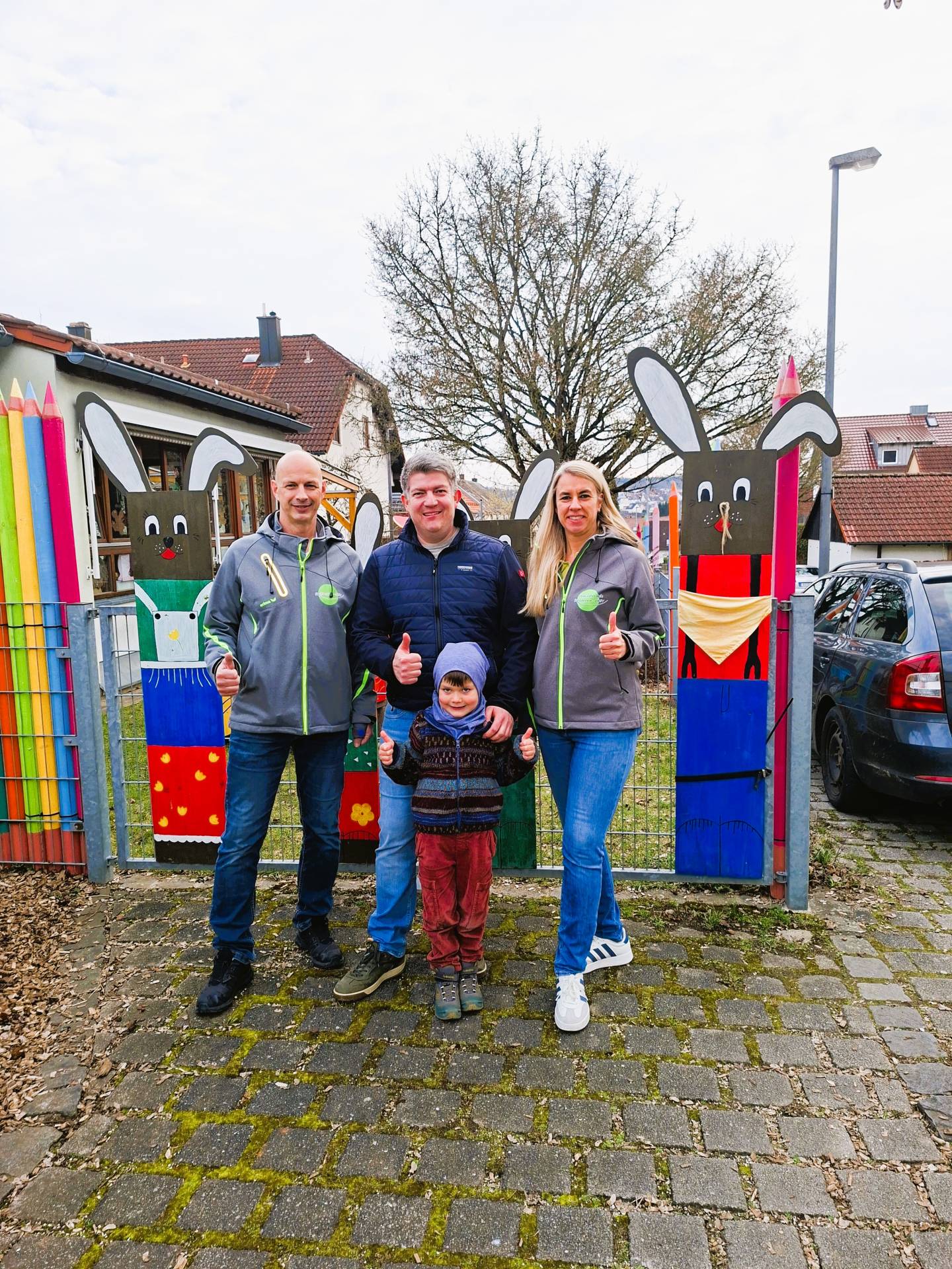 Kurz vor Ostern hatten nicht nur die Hasen an unserer KiTa „An der Point“ ein breites Grinsen im Gesicht. Der Förderverein, unserer KiTa – hier mit dem 2. Vorsitzenden Patrick Grun (Mitte) – freute sich sehr über die großzügige Spende von 500 € der „Physiotherapiepraxis Rossmann-aktiv“ aus Sulzbach-Rosenberg (rechts und links im Bild).