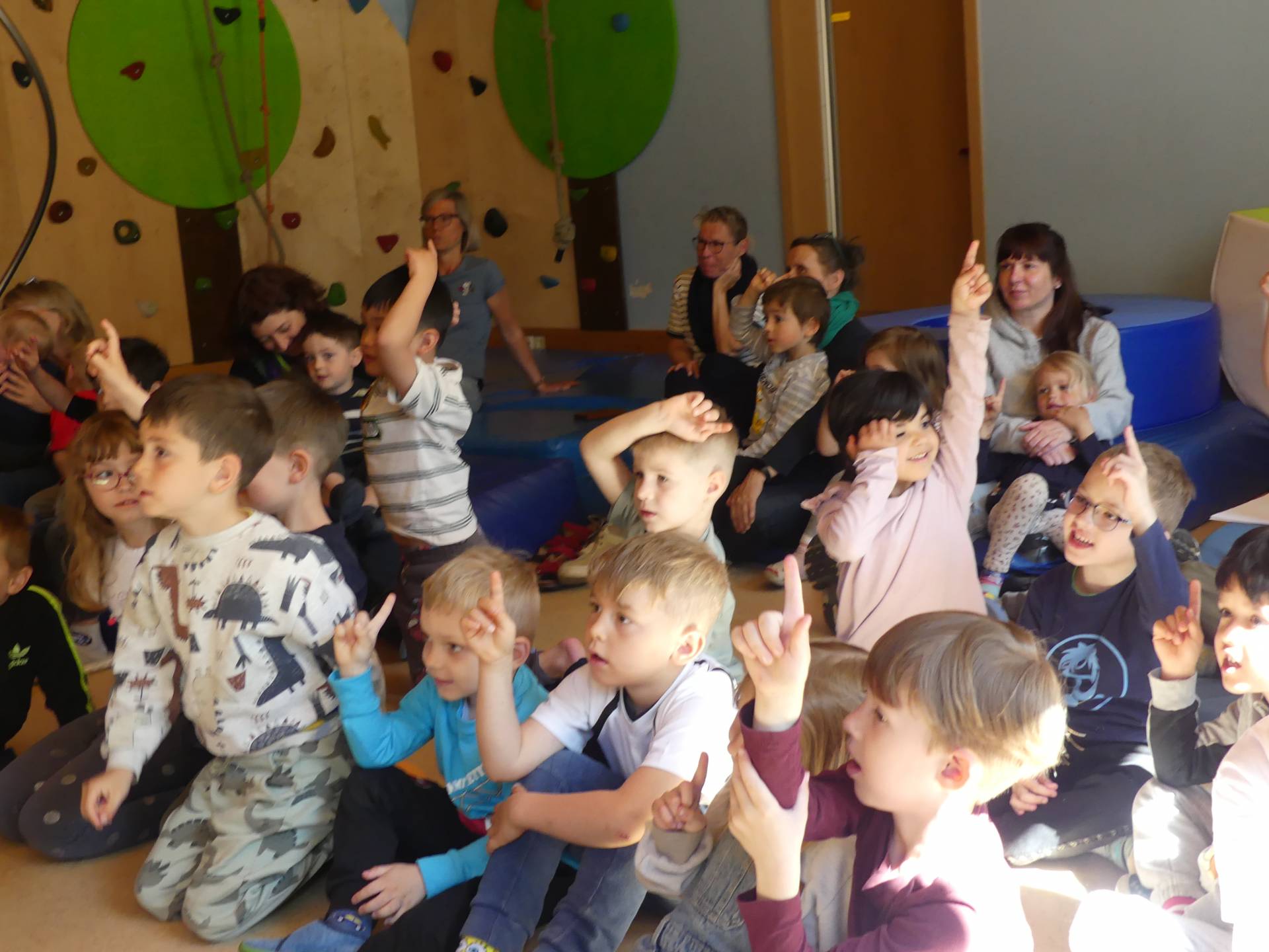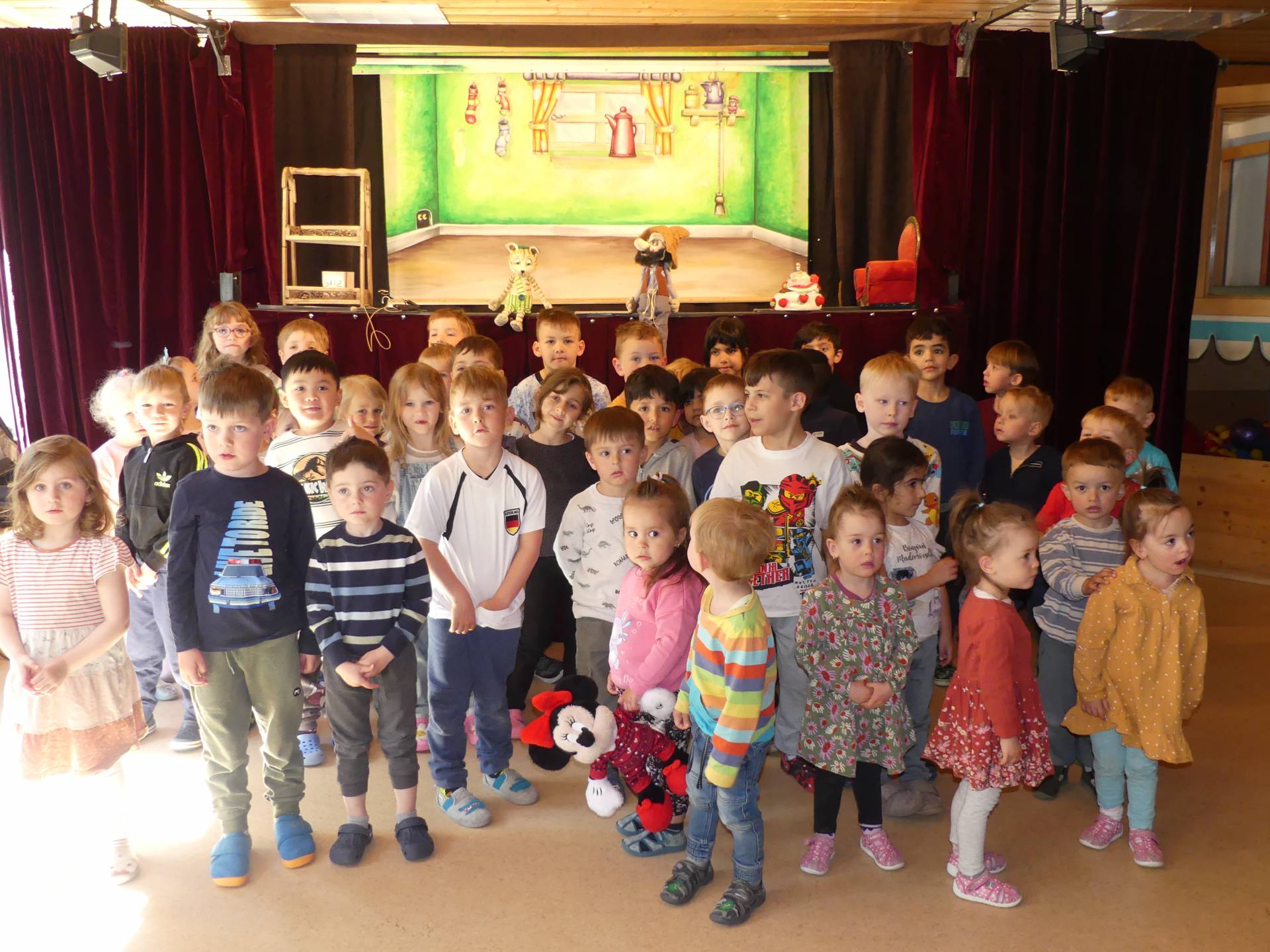 Anfang der Woche haben wir mit allen Kindern das Bilderbuch gelesen und schon da wurde viel gelacht. Aber nicht so viel wie beim Theater selbst. Ganz egal ob Kindergarten- oder Krippenkinder, auch die Erzieherinnen hatte jede Menge Spaß und werden dieses Erlebnis sicher nicht so schnell vergessen.